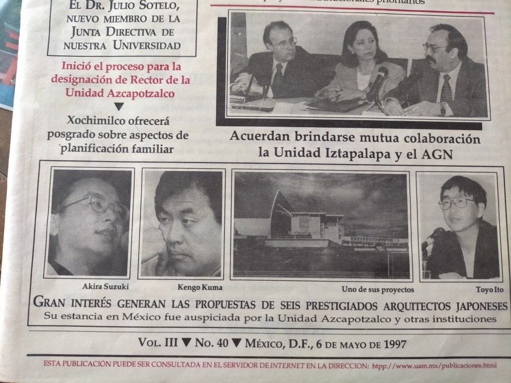 La primera vez que hice un trabajo de traducción formal fue para un evento de arquitectos japoneses que visitaron México para un proyecto en el centro de la ciudad de México. Fue más o menos en el año 1993 pero me quedó muy grabado el nombre del arquitecto con el que trabajé: Kengo Kuma.