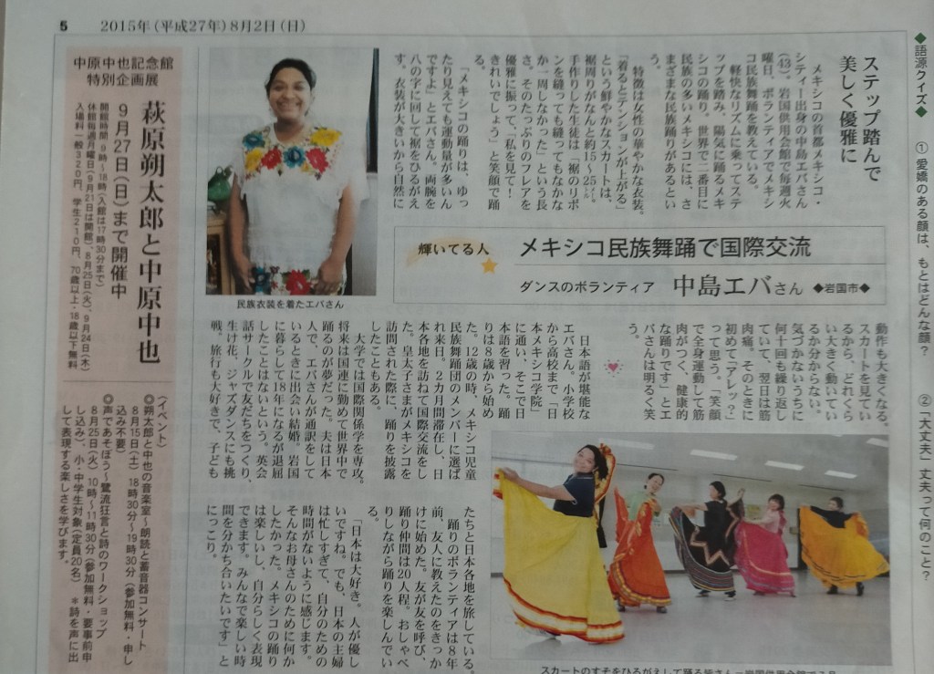 Esto fue hace casi 40 años era como que habían llegado dos extraterrestres a un pueblito de Fukui. Salimos en el periódico y el alcalde de la ciudad nos mandó llamar, claro mi maestra de baile nos acompañó, porque él quería preguntar de donde habíamos salido. Esto trajo como resultado un intercambio artístico. Recibimos invitación para regresar en 3 años a presentar bailables mexicanos en Japón. Conocí el Japón antiguo en una época donde el peso mexicano era muy fuerte. Tiempo en el que las monedas mexicanas te rompían la bolsa de los pantalones por el tamaño y el peso que tenían.