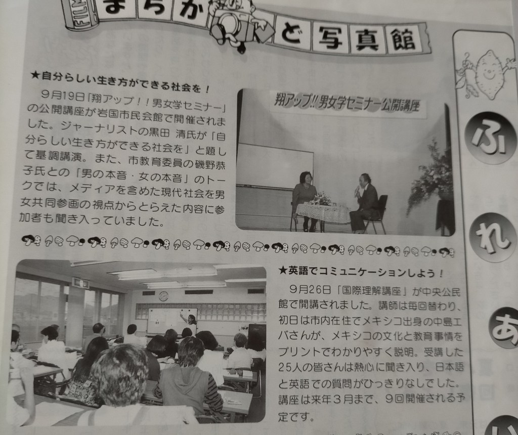 Nos saltaremos todos estos años, entonces y llegaremos al año 1997, año en que me casé y llegué a vivir a la ciudad de Iwakuni, en Japón. En un principio vivimos con mis suegros. Ellos trabajaban todo el día al igual que mi esposo, pero el primer día que llegamos mi esposo me llevó a conocer la biblioteca y algo asi como una casa de la cultura, donde había cursos y reuniones diversas para que tuviera algo que hacer en durante el día.